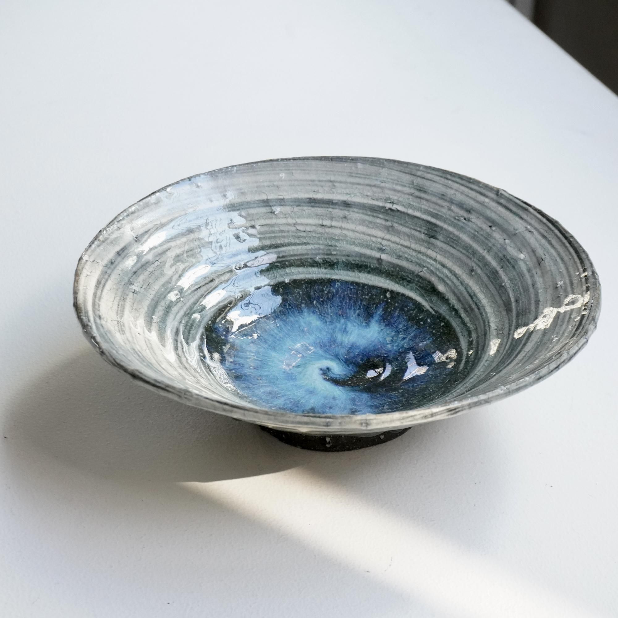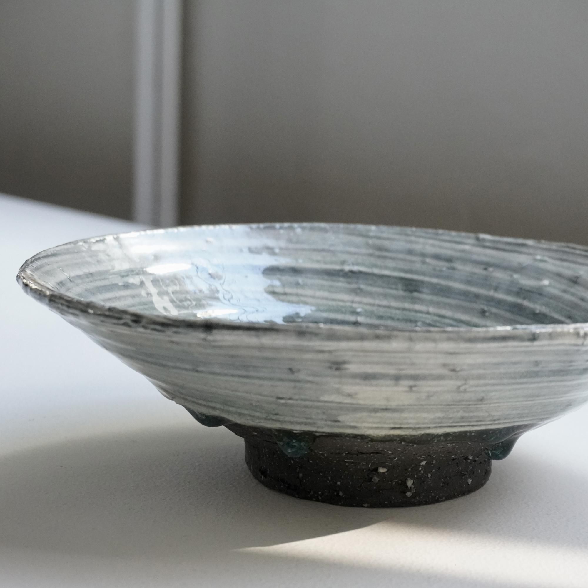 見込みの広さがあらゆるものを受け止めてくれ、底に溜まった釉薬のガラス質が